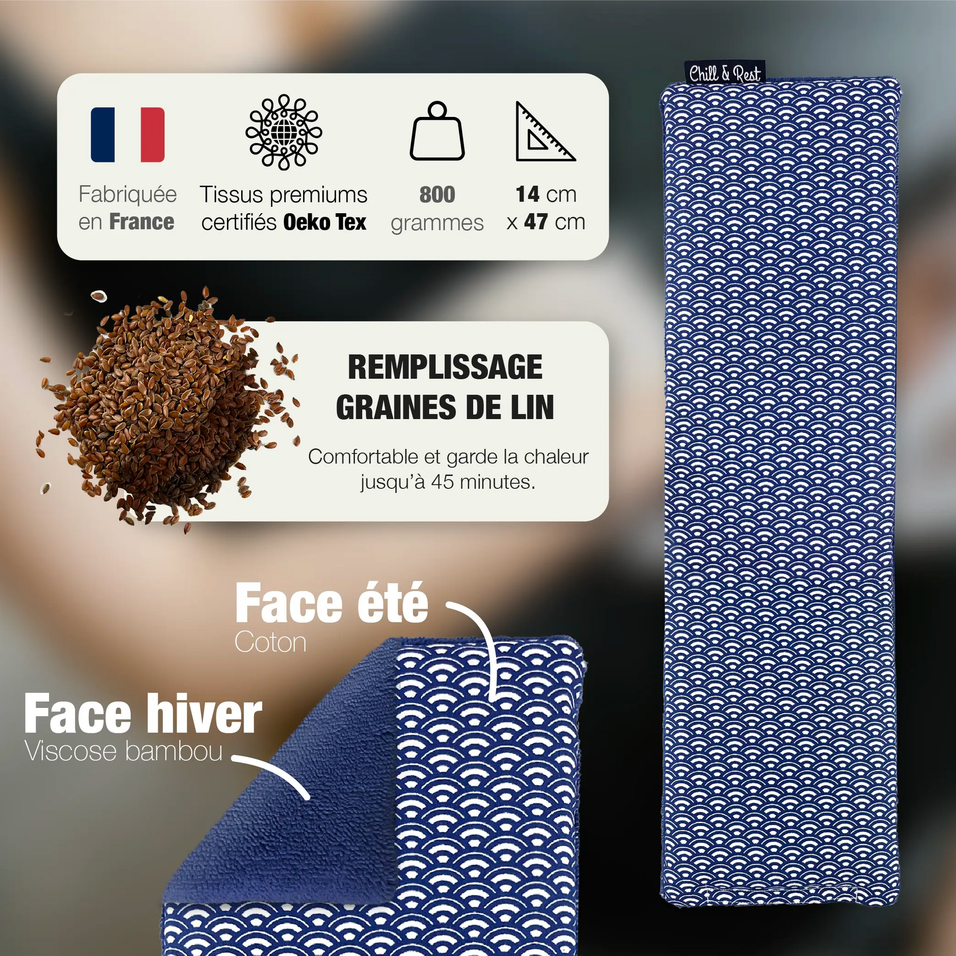 Elle garde la chaleur environ 30 minutes, juste assez longtemps pour te soulager et t'envelopper de confort. Et quand elle n’est plus assez chaude, tu peux simplement la remettre au micro-ondes.